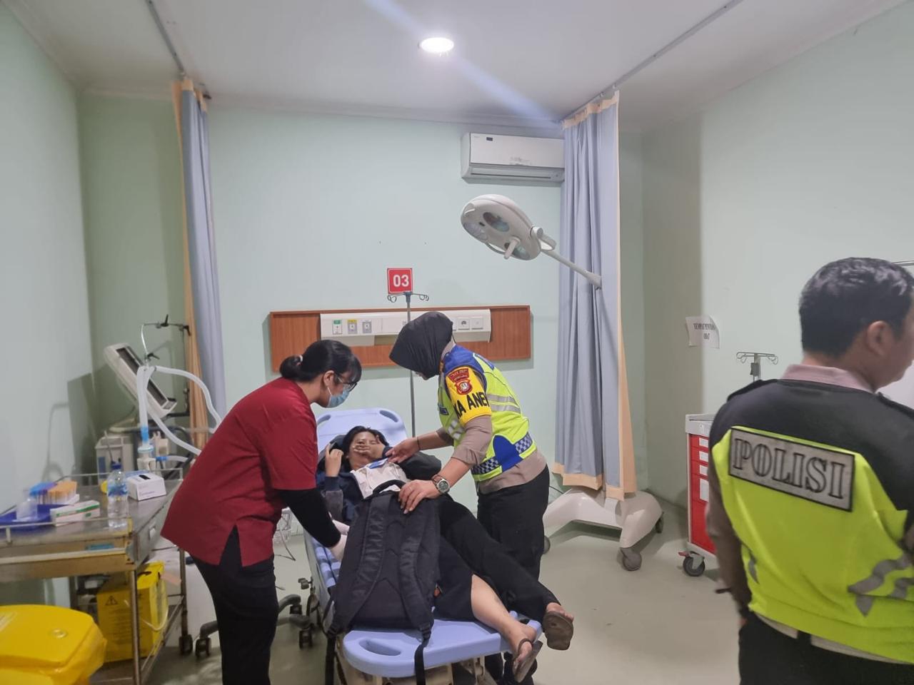 Tidak berselang datang tirm polisi wanita yang sedang berpatroli dan langsung membantu untuk kemudian di bawa ke RSUD Kab.Bekasi untuk mendapatkan perawatan, sedangkan,