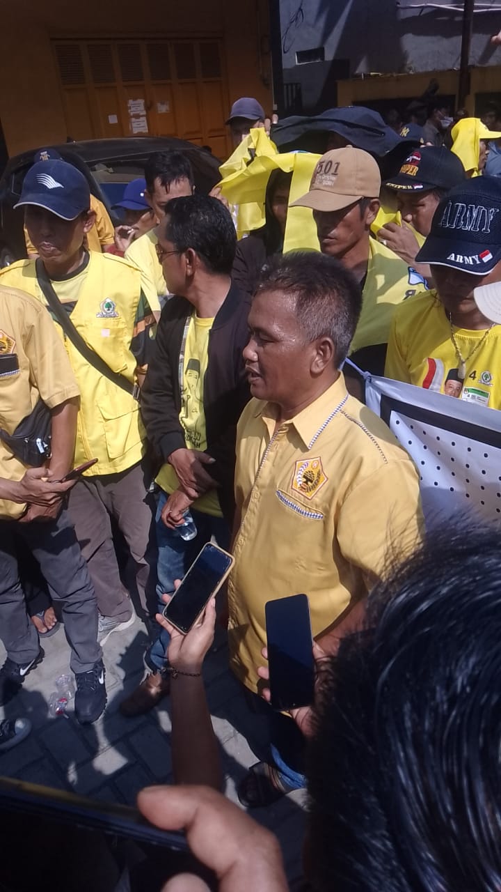 Di Kantor DPD Partai Golkar Kabupaten Bekasi jalan Industri raya Desa Pasir Gombong di geruduk massa pendukung H. Sarim menuntut keadilan.