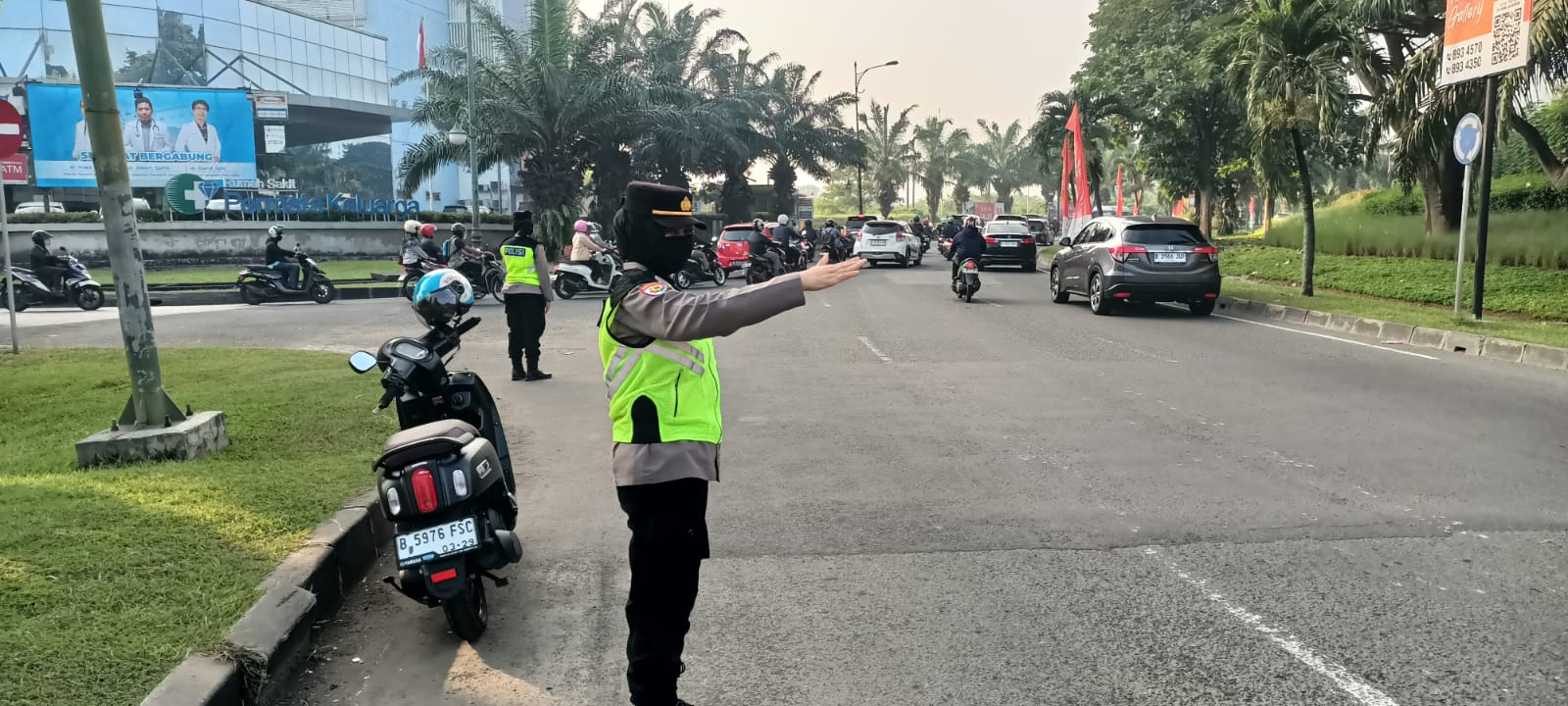 Pengaturan lalu lintas yang di lakukan Polisi Wanita atau Polwan Polres Metro Bekasi di antaranya Bundaran Eco Water,Depan RS. Permata Keluarga dan Bundaran Patung kuda.