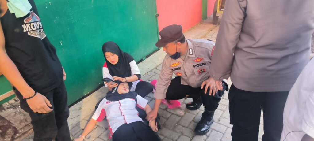 Polisi berikan pertolongan pertama terhadap warga masyarakat yang alami pingsan hilang kesadaran.” Kami langsung membawa korban ke Klinik dan segera menghubungi pihak keluarga dan rekan terdekatnya, alhamdulilah kondisinya sudah mulai membaik setelah ditangani oleh tim medis, korban mengalami kelelahan fisik sehingga jatuh pingsan,” ungkapnya