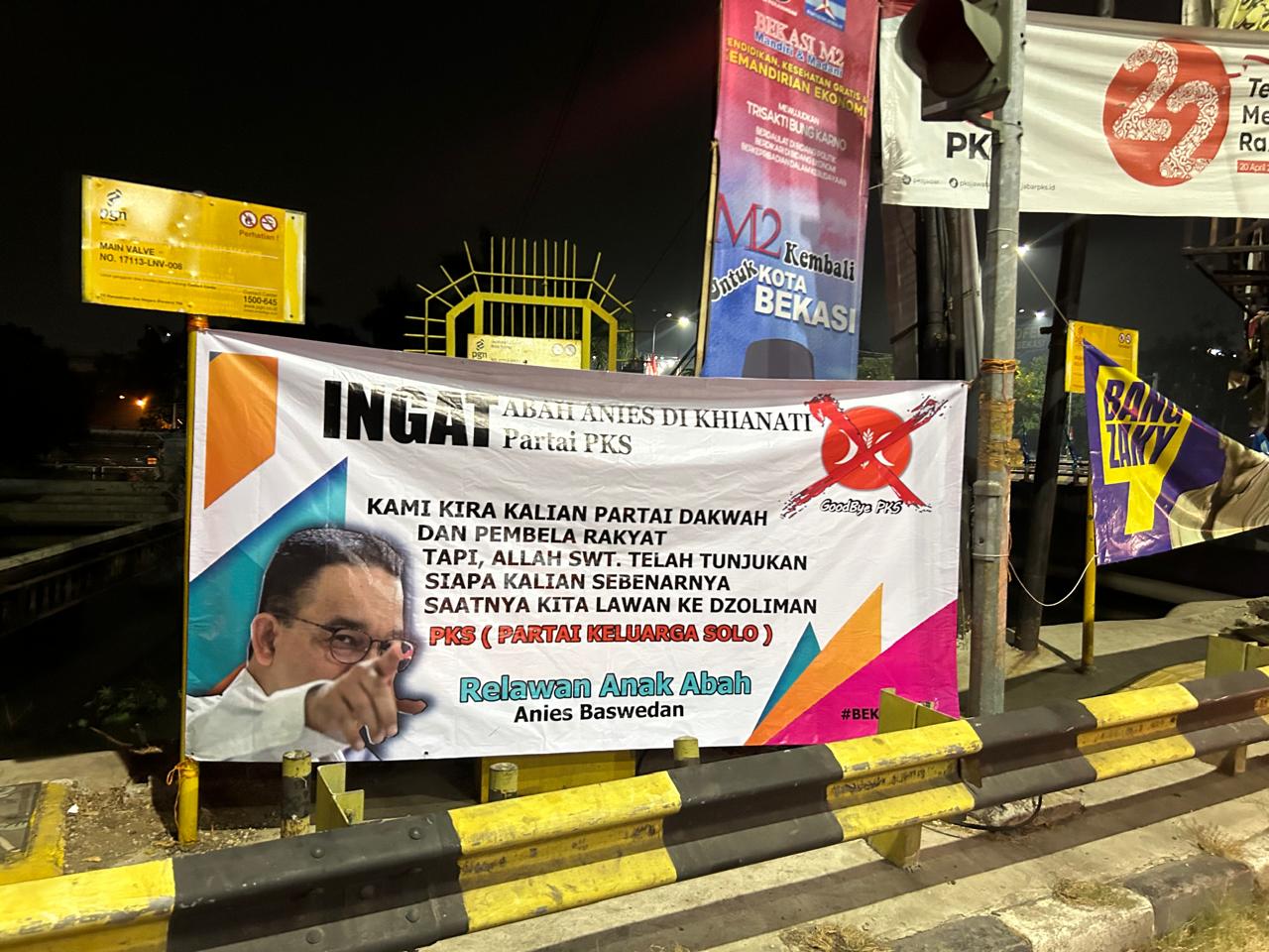 Dari hasil pantauan lapangan Bekasinewsroom, pada spanduk terdapat foto Anies Baswedan dan lambang atau logo PKS yang disilang. Pada spanduk tersebut tertulis bahwa Abah Anies telah dikhianati Partai PKS.