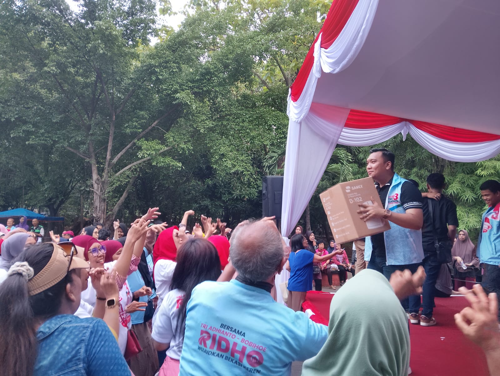 Deklarasi damai ini dihadiri sedikitnya 3000 warga dari wilayah Bekasi Selatan. Selain sembako dan door prize, warga juga dengan sukarela mendatakan diri sebagai pendukung pasangan RIDHO sebagai calon pasangan pemimpin Kota Bekasi lima tahun ke depan.(Ykorra)