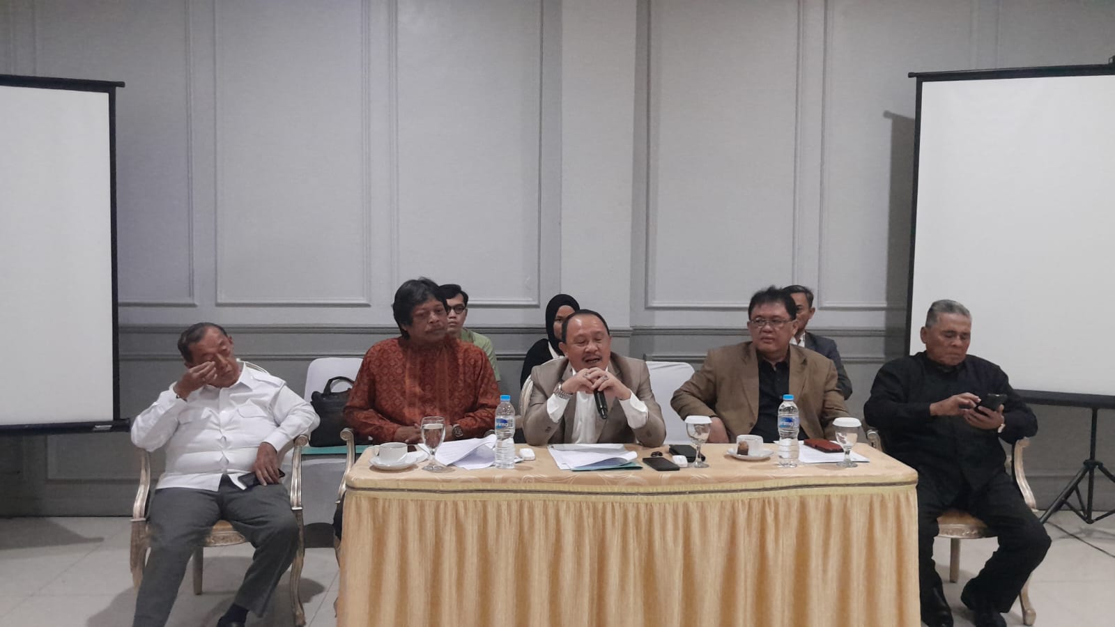 Kota Bekasi – Tim Hukum pasangan peserta pilkada 01 pasangan Heri Koswara dan Solihin menyampaikan banyaknya berita hoax melalui media social terkait fitnah terhadap pasangan 01 menjelang pencoblosan 27 November mendatang, di Rumah Makan Wulan Sari, Kota Bekasi, Selasa (19/11/2024).