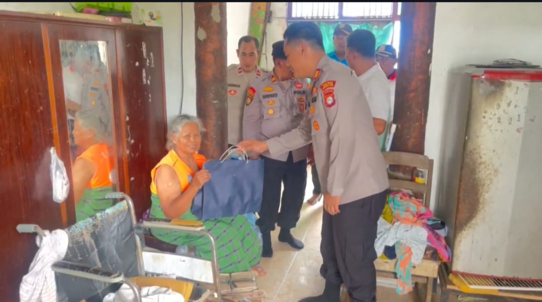 Ibu Sutrisno, 62 tahun wanita lansia yang mengalami penyakit stoke dan bertrempat tinggal di kampung Kavling Baru Rt.001/022 Desa Segara Makmur Kecamatan Tarumajaya Kabupaten Bekasi, saat mendapatkan bantuan dan santunan dari anggota kepolisian polsek Tarumajaya(25/02/25).