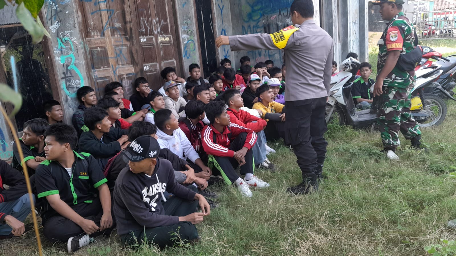 Kabupaten Bekasi – Polsek Tambelang, Koramil mengamankan 103 Pelajar yang Kedapatan sedang berkumpul dan mengkonsumsi Minuman Keras jenis Ciu, di Jalan Raya Sukarapih Desa Sukarapih Kecamatan Tambelang Kabupaten Bekasi. (1/8/2025).