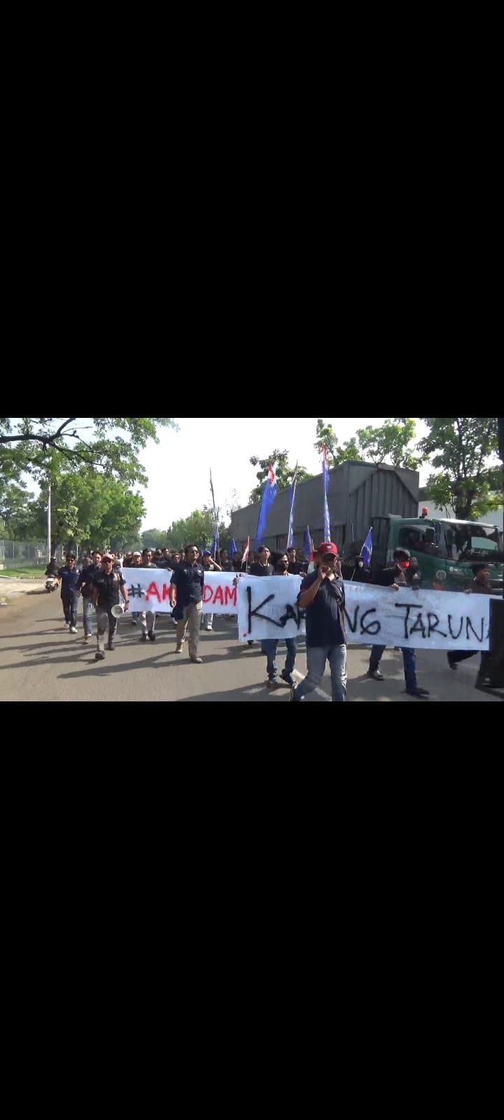 “Sudah terlalu banyak penderitaan – penderitaan kami yang hanya menjadi penonton di tengah kawasan industri, yang tidak mendapat haknya, tidak mendapat pekerjaan di tanah kami sendiri,” kata Kordinator Aksi Karang Taruna, Dwi Azhar dari atas mobil komando.