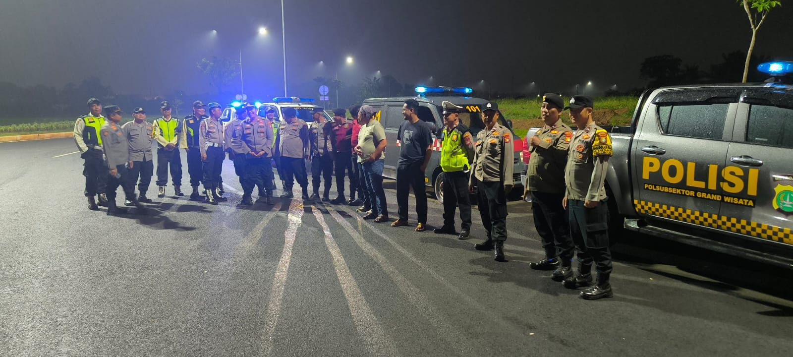 Selama kegiatan, petugas melakukan patroli dialogis dengan Satpam perusahaan dan kawasan perumahan guna mengajak masyarakat memperkuat sistem keamanan lingkungan. Hasil pelaksanaan patroli menunjukkan bahwa situasi kamtibmas dalam keadaan aman, tertib dan kondusif, serta tidak ditemukan kejadian menonjol.